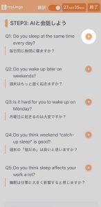 STEP 3で質問再生ボタンをクリックしてAI講師との会話をはじめます。チャットウィンドウを通じて、AI講師があなたに質問します。