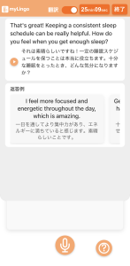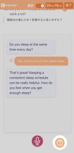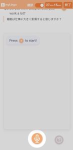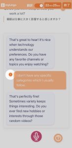 マイクボタンをクリックし、回答を吹き込んでください。吹き込んだ後、もう一度マイクボタンをクリックします。あなたの回答に対してAI講師が返事をします。