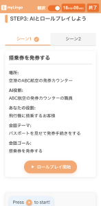 ロールプレイの一覧から教材をクリックするとレッスンがはじまります。